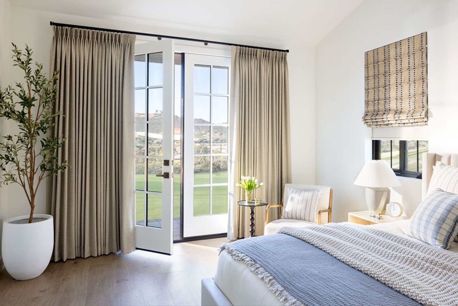 Traversing draperies, using traverse rods, are loved for their smooth and effortless operation, especially when opening and closing large or heavy curtains. The track system allows curtains to glide easily across the window, eliminating the need for manual pulling and reducing wear on the fabric. They are also favored for their ability to distribute weight evenly, preventing sagging, and for their aesthetic appeal, especially with luxurious window coverings.