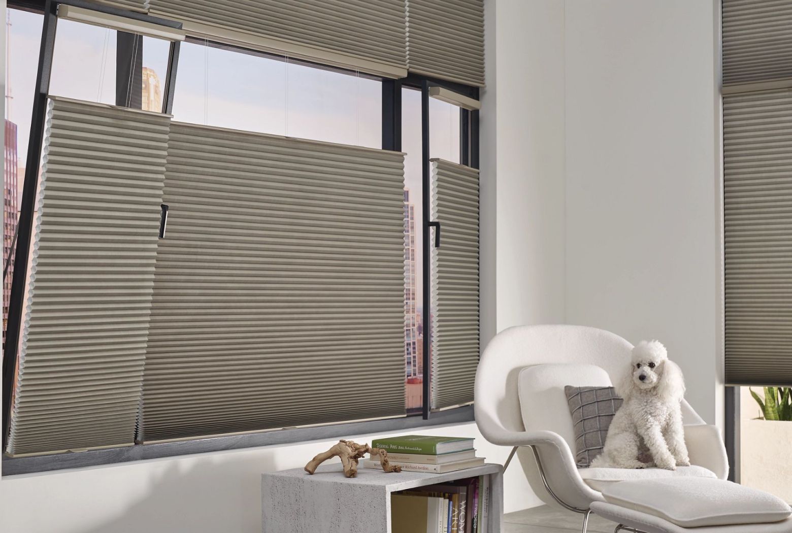 Meet TrackGlide. Sleek tracks run along the edges of the window frame, allowing window shades to operate no matter the position of the window. Available exclusively with Duette honeycomb shades, you can enjoy light control, reduced glare, and privacy. You’ll also have the option to choose top down bottom up in addition to the comfort of these insulated shades.