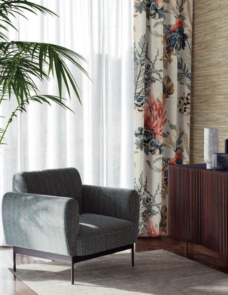 The fabrics in a room can alter how it feels and functions. For instance, heavy fabrics tend to absorb light, creating a cosier ambiance, whereas lighter materials like cotton and linen reflect light, making a room feel more spacious and airy. Color and pattern also play a crucial role, with neutral tones creating a calming atmosphere and bolder colors adding energy and personality.