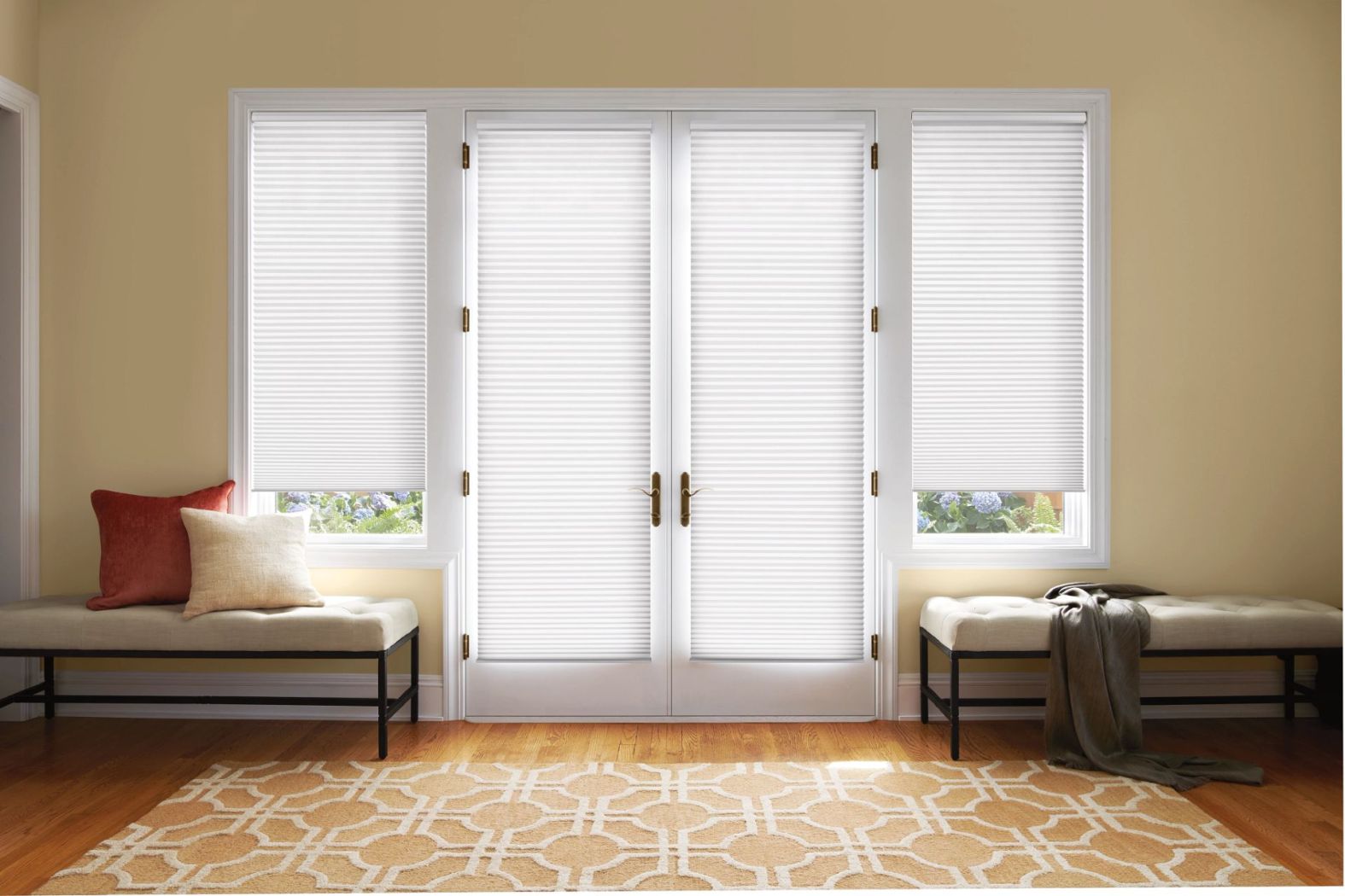 Covering garden doors with blinds can be challenging due to their size, the need for functionality, and potential for damage.  When selecting a blind or shade, slim headrails and hold-down brackets are often chosen for garden door shades because they offer a sleek, streamlined look and prevent the shades from moving or making noise when the door is opened or closed.