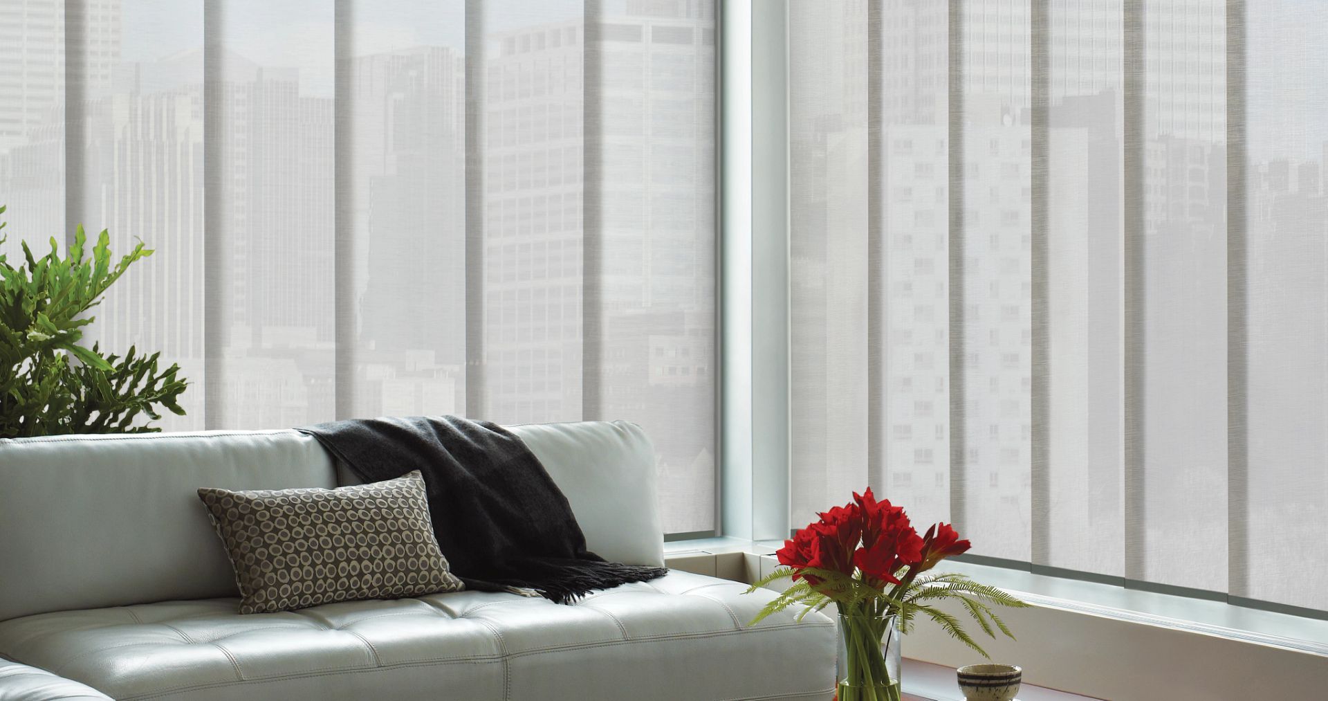 Sleek gliding panels. A contemporary feel. Creating a dramatic backdrop for short, tall or wide windows.