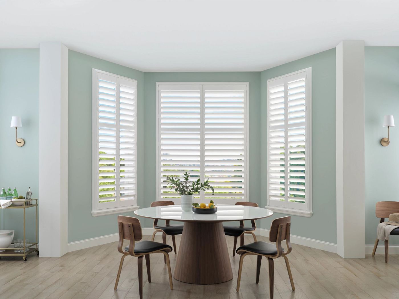 Hunter Douglas Palm Beach Polysatin Shutters can also be made in a wide variety of shapes and sizes to fit some of the most challenging windows. Check our Solutions page to find out more!