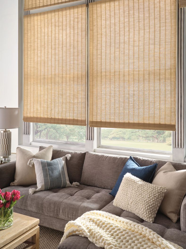 Handcrafted from wood, reeds, grasses and bamboo, Provenance® Woven Wood Shades bring a touch of the outdoors, in.