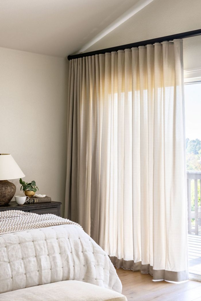 Traversing draperies, using traverse rods, are loved for their smooth and effortless operation, especially when opening and closing large or heavy curtains. The track system allows curtains to glide easily across the window, eliminating the need for manual pulling and reducing wear on the fabric. They are also favored for their ability to distribute weight evenly, preventing sagging, and for their aesthetic appeal, especially with luxurious window coverings.